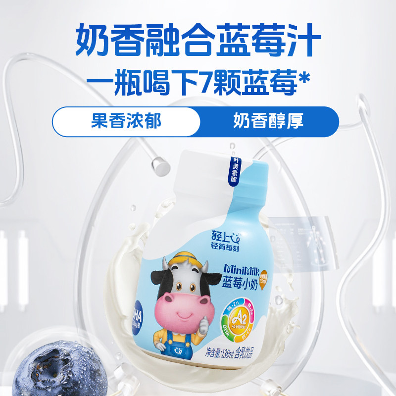 轻上蓝莓小奶儿童牛奶饮品成长DHA含A2奶粉钙铁锌叶黄素早餐饮料