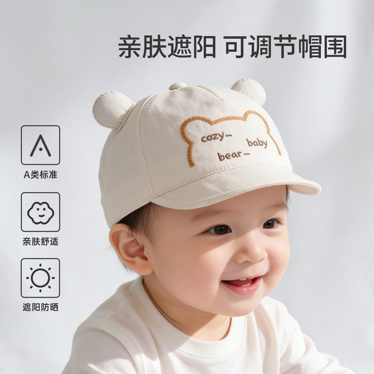 宝宝帽子春秋款婴儿开春遮阳防晒帽儿童纯棉鸭舌帽男童可爱棒球帽
