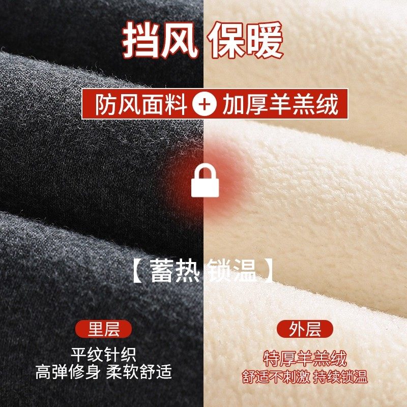 德绒无痕保暖秋裤女高腰内穿加厚加绒一体羊羔绒纯色大码打底裤冬