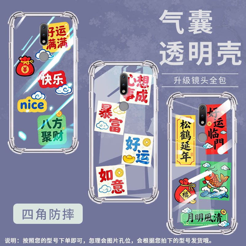 适用诺基亚2.4气囊壳松鹤延年诺基亚1.4高级感Nokia5.3中国风诺基亚7.2手机壳TA-1274四角防摔潮流保护套