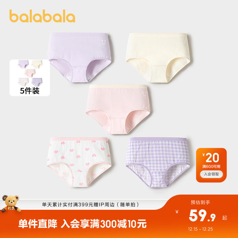 巴拉巴拉儿童内裤棉三角短裤女童弹力亲肤萌趣中幼童不夹PP五条装
