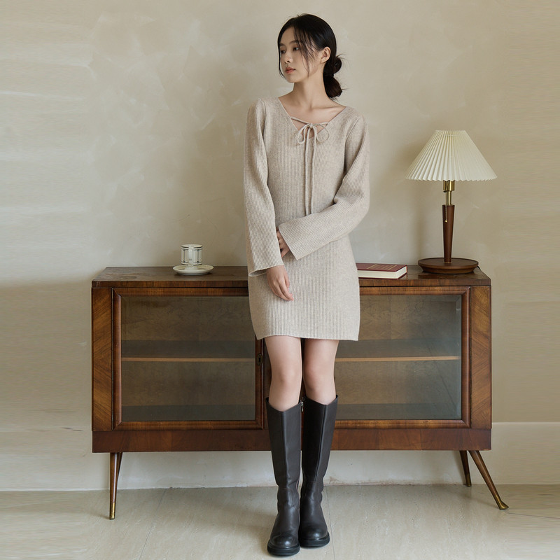BANANA CICI2026年春季新款荷叶边V领针织衫/连衣裙