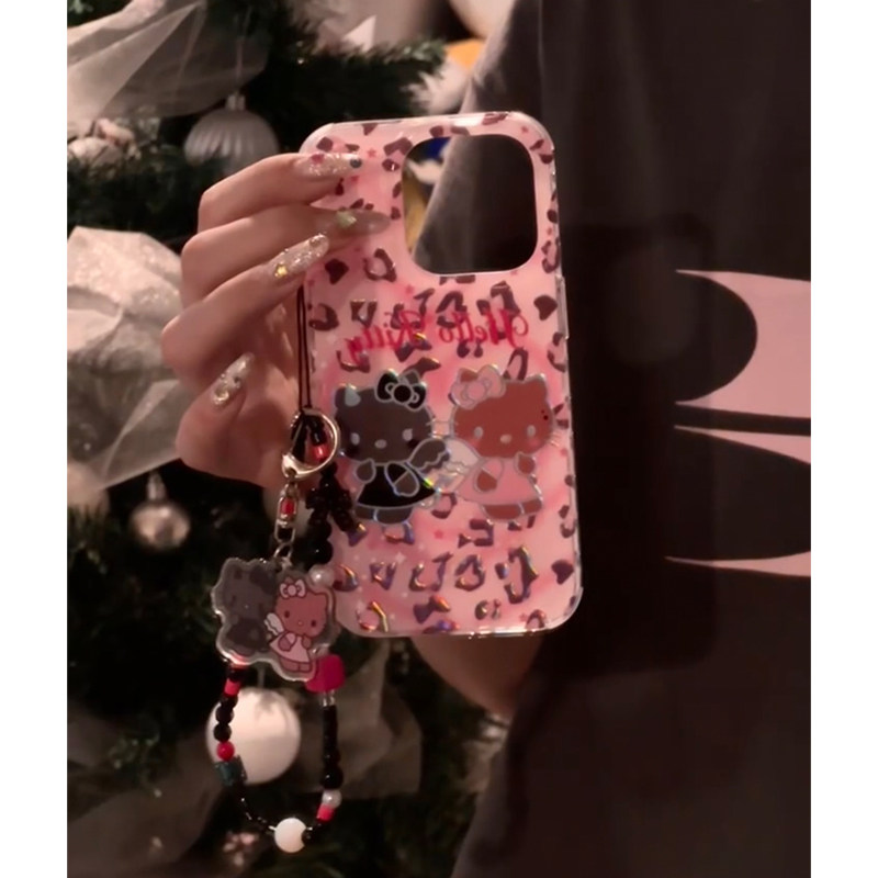 小众时尚鎏金豹纹猫咪适用苹果16promax手机壳iPhone15女新款14带链条16可爱13少女16Pro防摔15pro保护套日韩