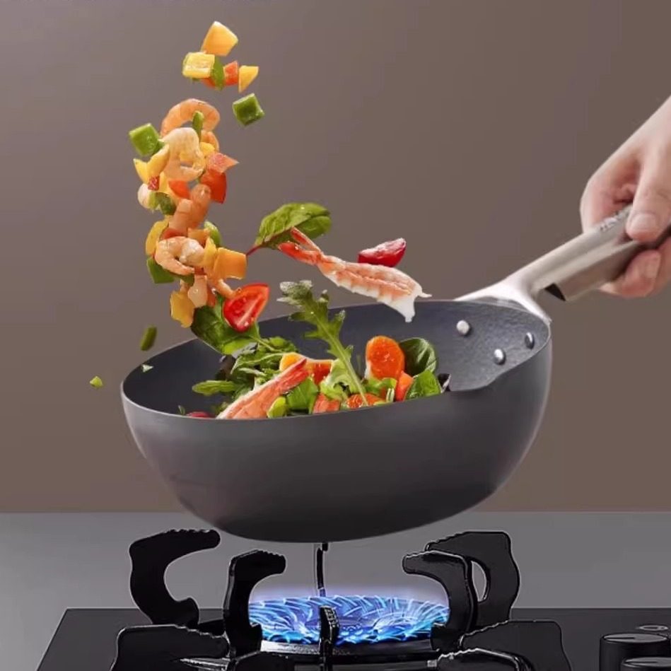 钛红芯控温平底锅不粘锅家用无涂层炒菜煎蛋牛排电磁炉专用深煎锅