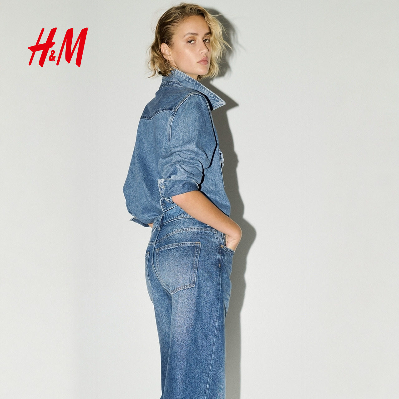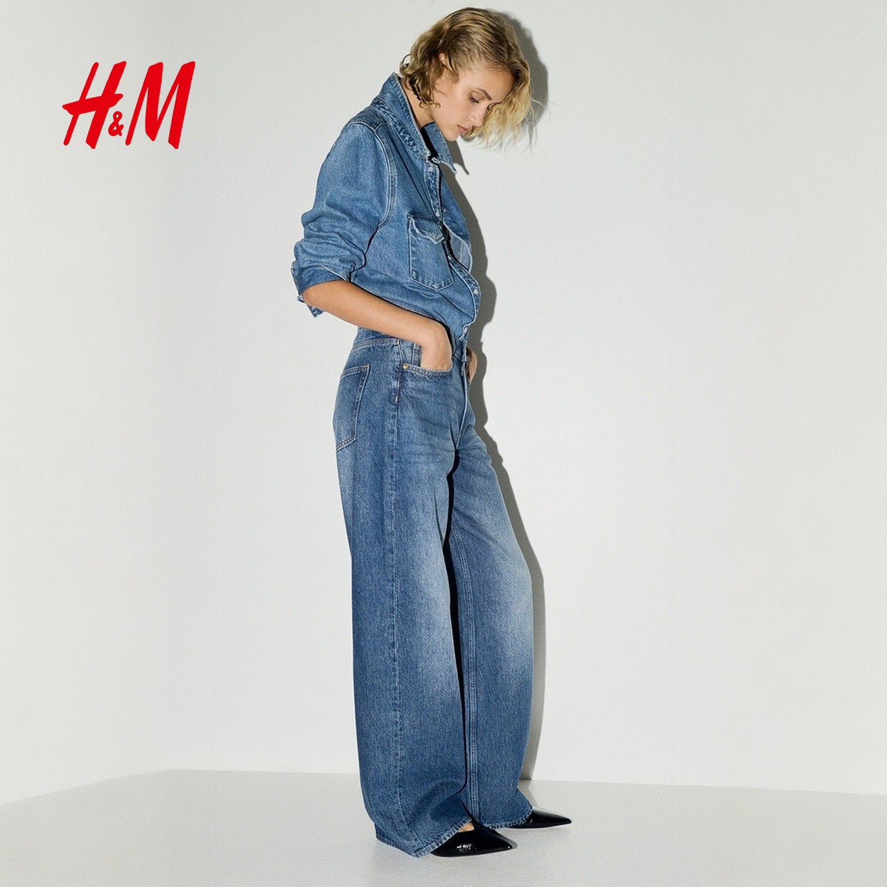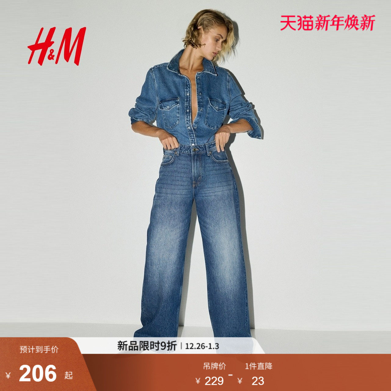 HM2025冬季新款女装中腰阔腿牛仔裤1295576