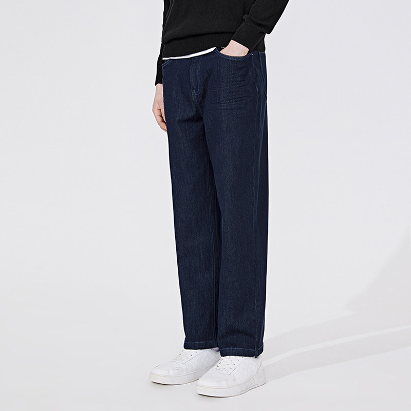 [磨毛]Navigare意大利小帆船蓝色休闲牛仔裤男秋冬直筒阔腿裤子