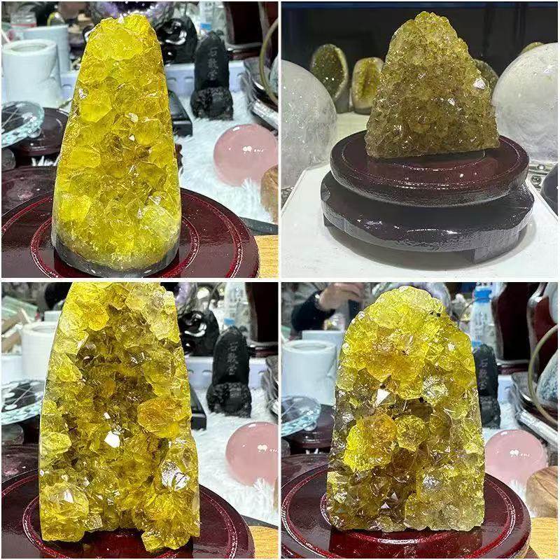 乌拉圭黄水晶洞摆件黄晶洞晶簇晶镇烤色消磁净化扩香石招财家居款