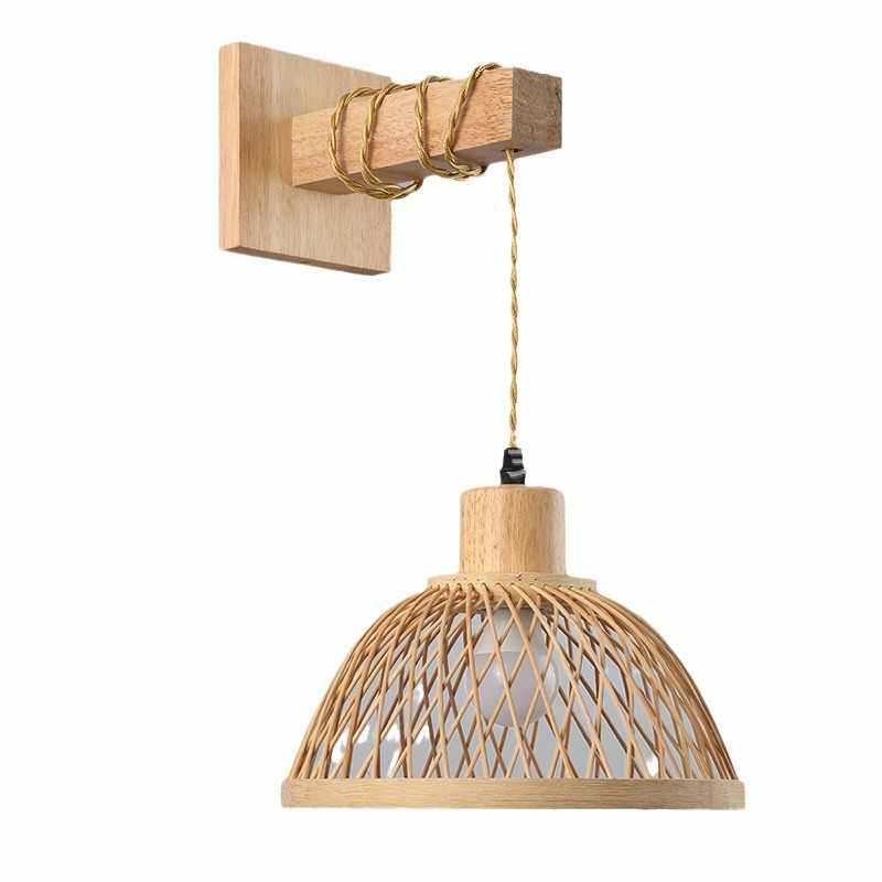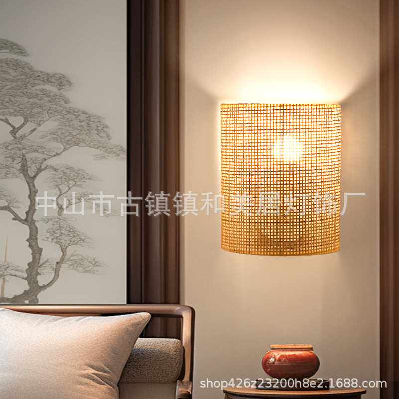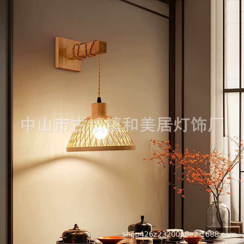 东南亚餐厅楼梯过道竹艺灯日式田园民宿茶楼阳台卧室床头竹编壁灯