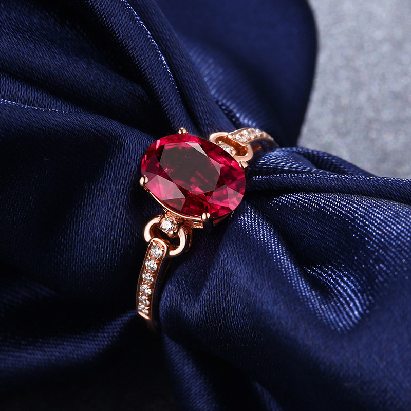蜜安琪珠宝 1.61~5.13CT鸽血红碧玺戒指女 天然彩色宝石镶嵌