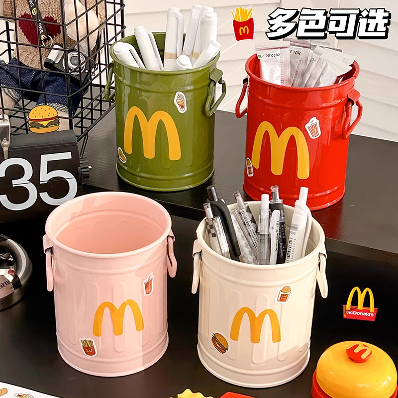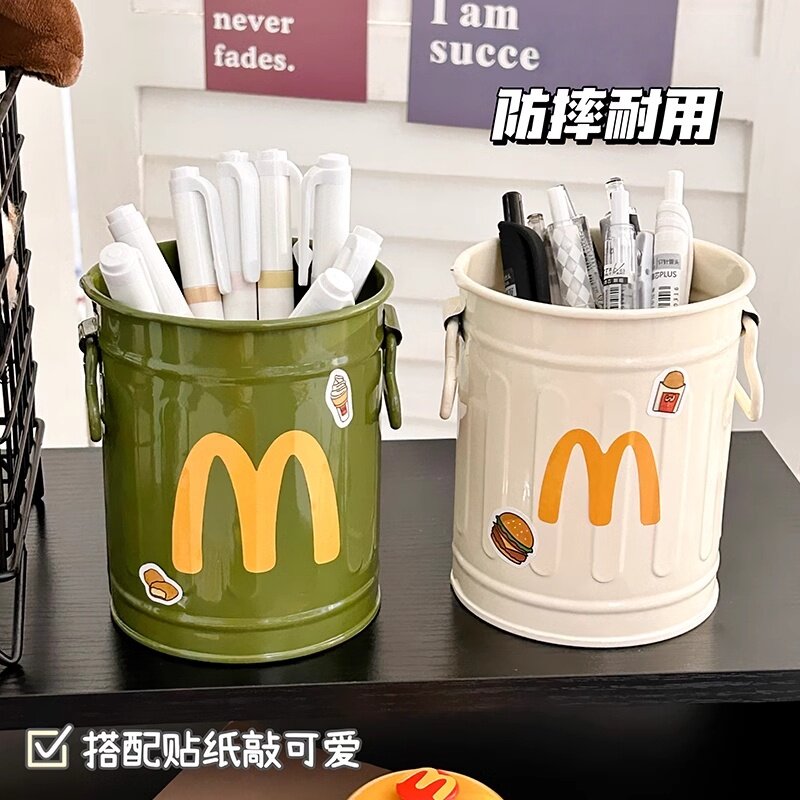 麦当当m美式笔筒复古摆件高颜值学生桌面办公室化妆刷文具收纳桶