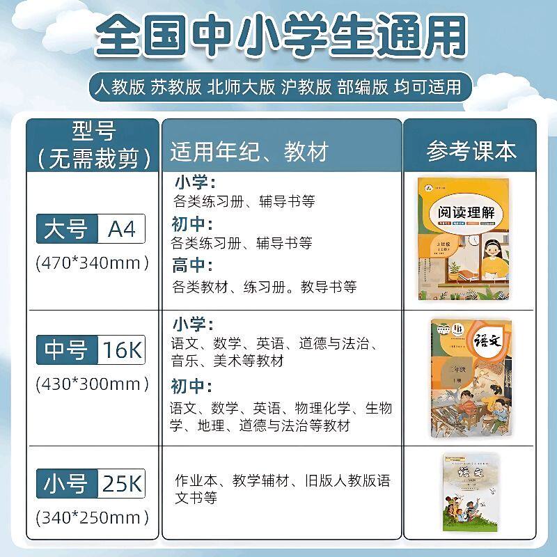得力书皮贴纸自粘透明磨砂包书膜一年级下册包书皮书套小学生二三四年级课本A4书壳保护套16K包书纸2025新款