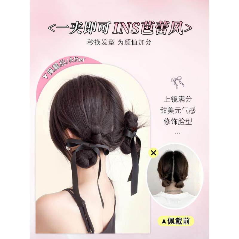 y2k丸子头假发发圈女辫子丝带盘发蓬松头发发型氛围麻花辫造型