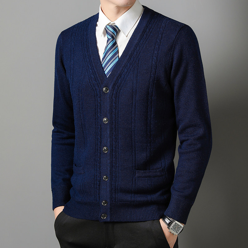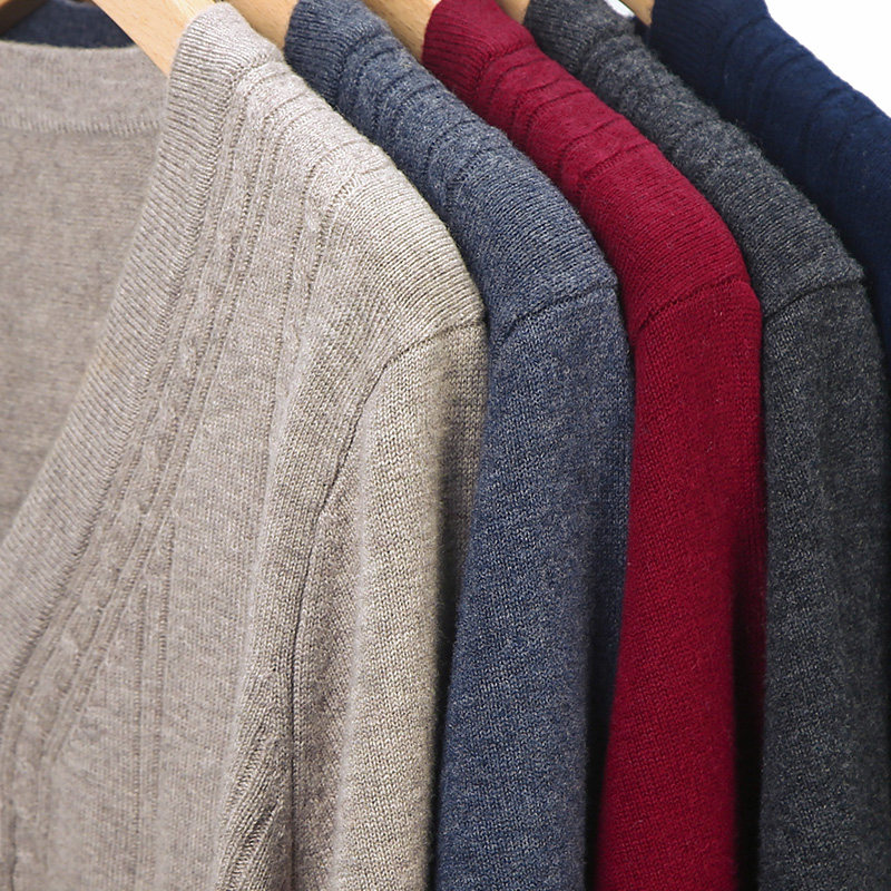 恒源祥羊毛开衫男100纯羊毛针织打底衫2025秋冬季新款V领毛衣外套