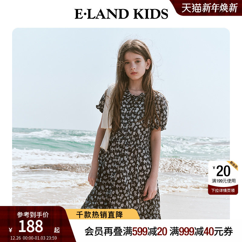 【100%莱赛尔】eland kids衣恋童装女童连衣裙夏复古甜美碎花裙子