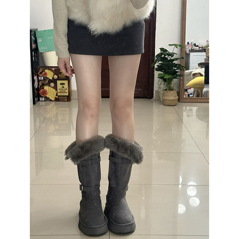 小个子厚底灰色长筒雪地靴女2025冬新款增高加绒加厚保暖东北棉鞋