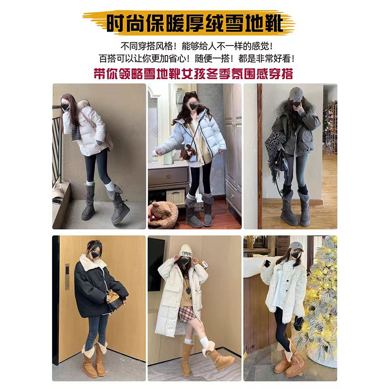 油叽叽~真皮羊毛雪地靴女冬季加绒加厚保暖棉靴厚底增高短筒靴子