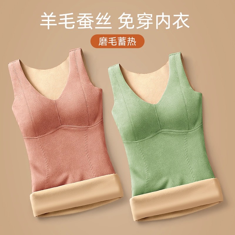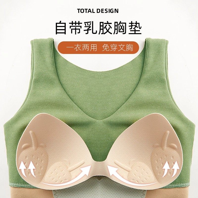 自带胸垫内衣无痕保暖背心女加绒加厚内穿打底内搭女士上衣文胸
