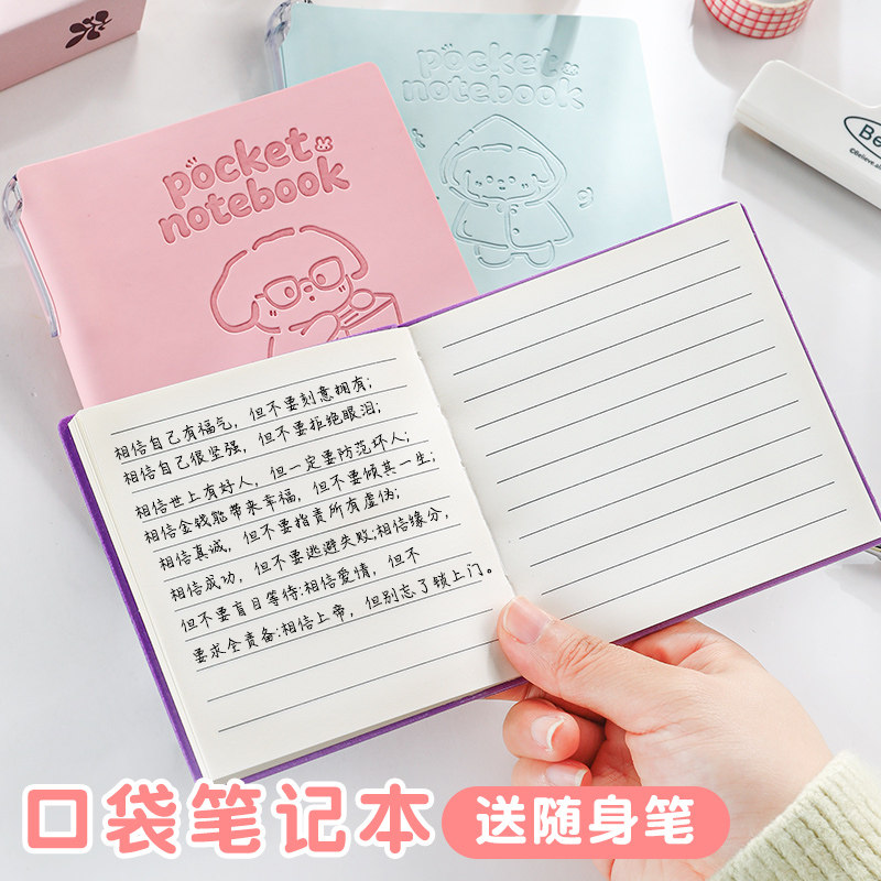 卡通口袋作业登记本同学自带笔插位高颜值三年级一年级抄记本小学生专用记录本小本子加厚随身便携迷你笔记本