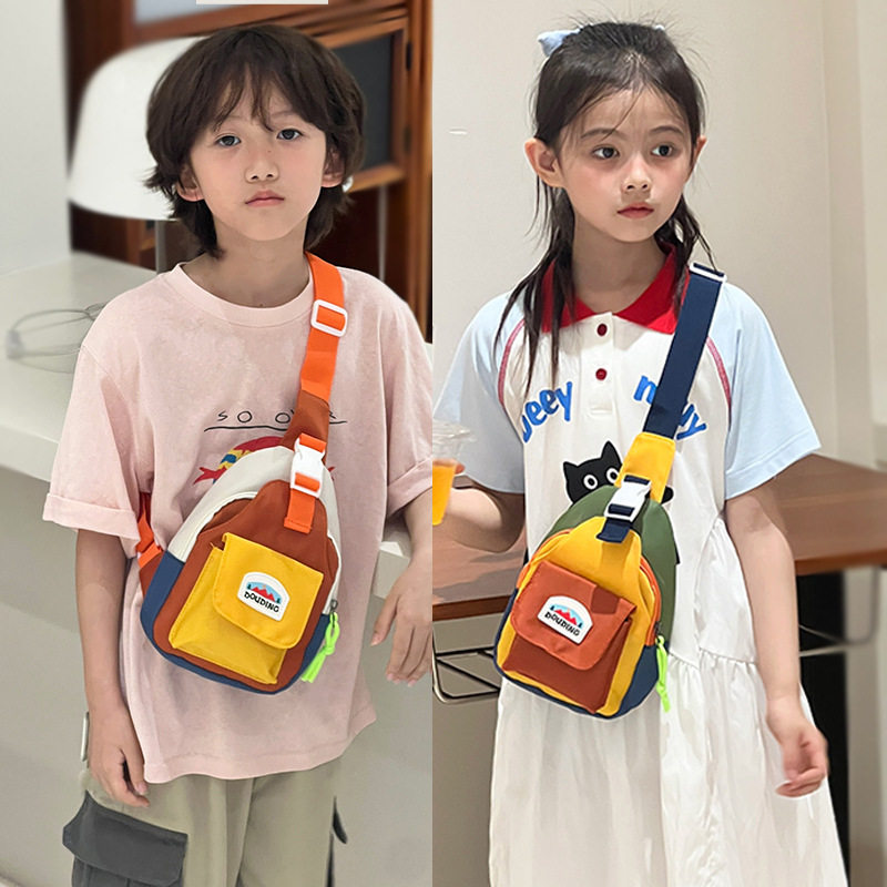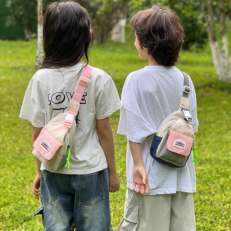 新款时尚儿童男童女童胸包潮酷拼色轻便出游迷你小包包手机斜挎包
