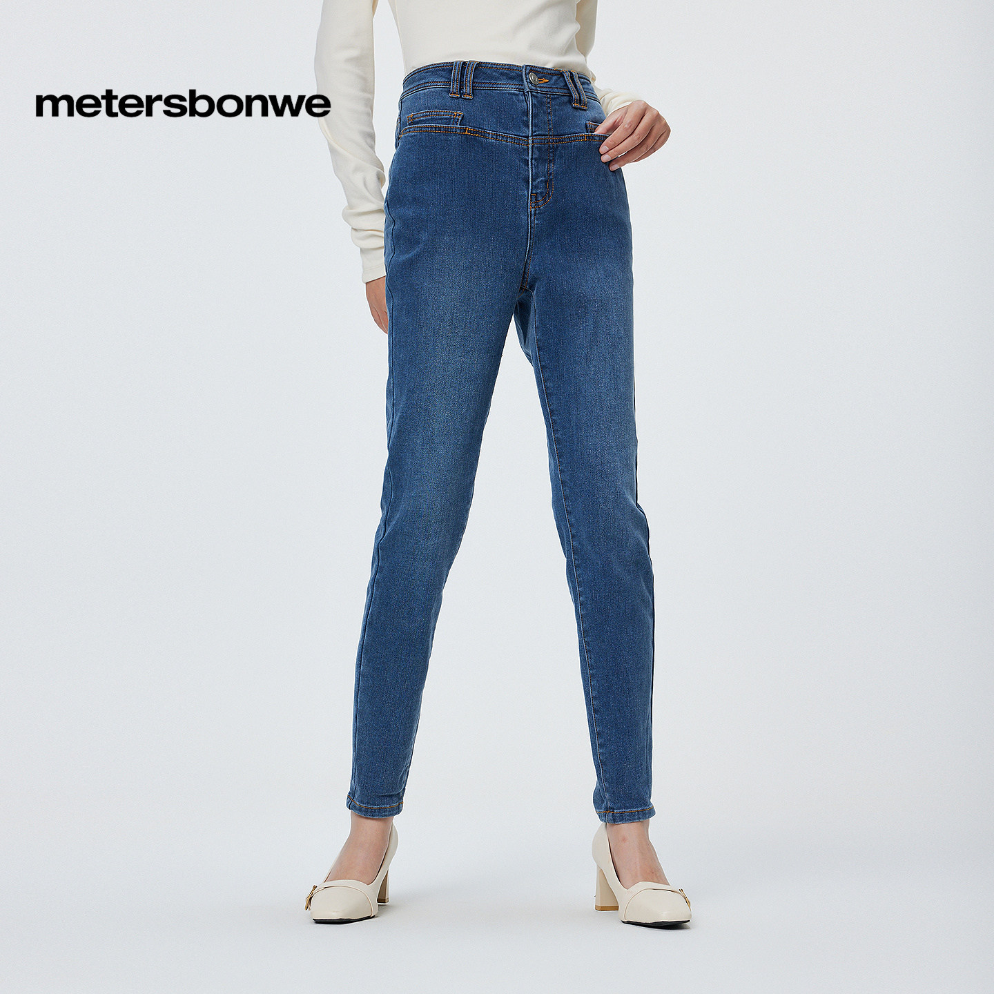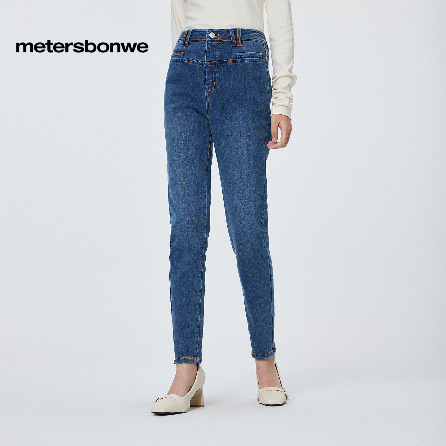 美特斯邦威女款甜酷弹力保暖修身显瘦百搭时尚潮流小脚牛仔裤