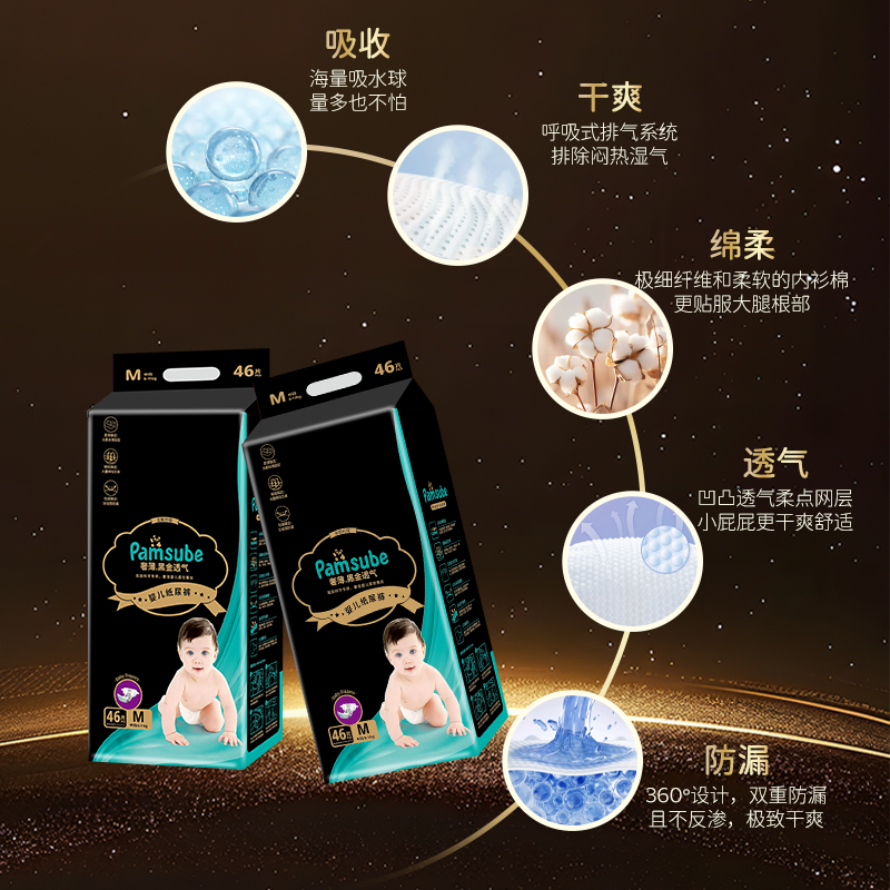 Pamsube黑金系列拉拉裤超薄透气男女宝宝婴儿纸尿裤纸尿裤L