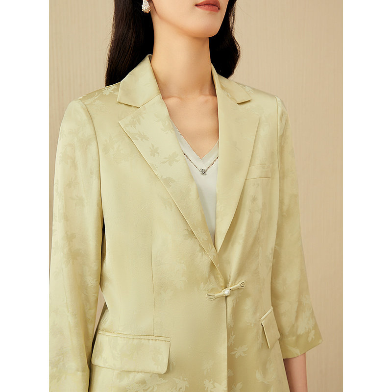 【新中式】YINER音儿2025夏季新款盘扣弹力真丝波点提花西装外套