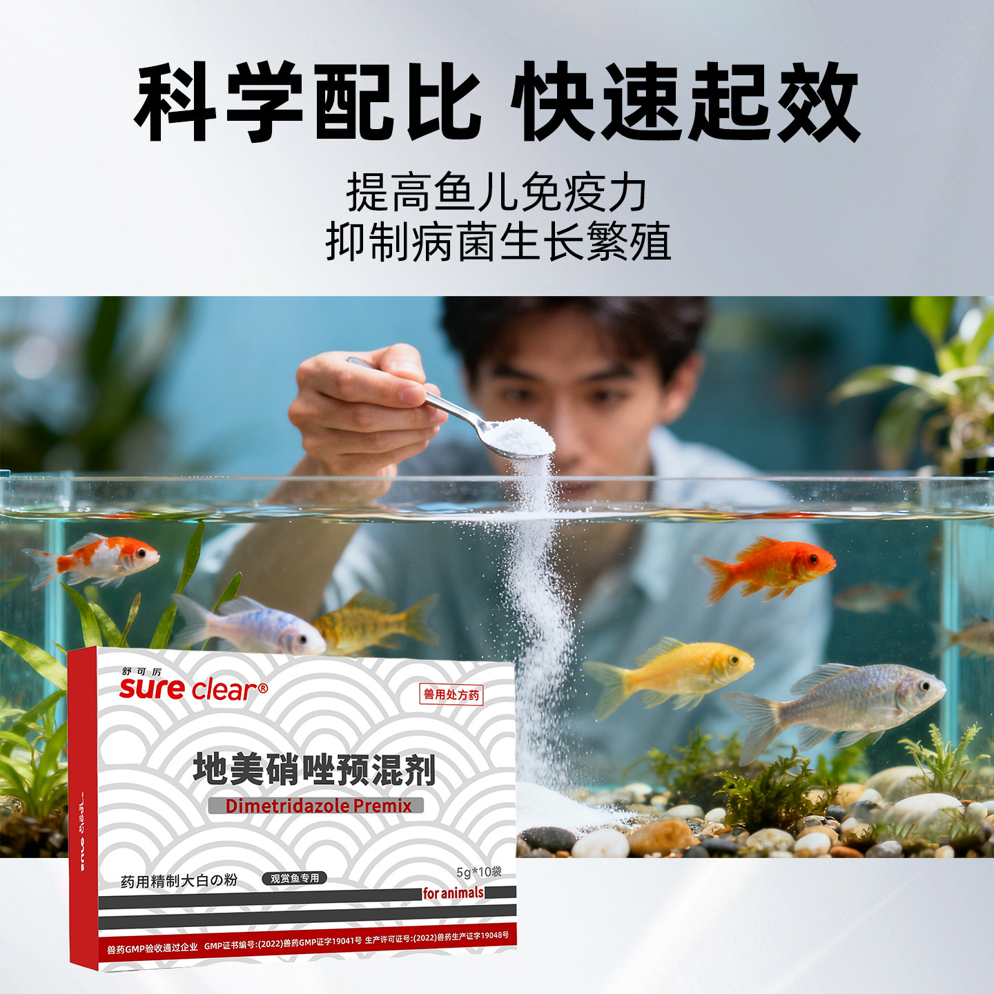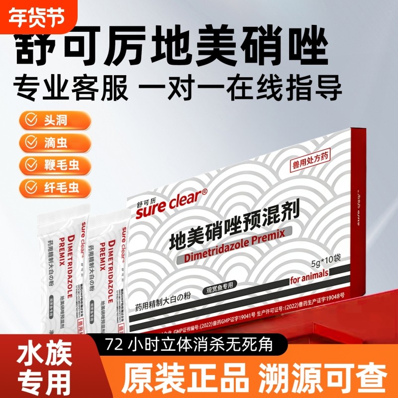 舒可厉地美硝唑可溶性粉大白片观赏鱼水族治疗突眼肠炎头洞特效药