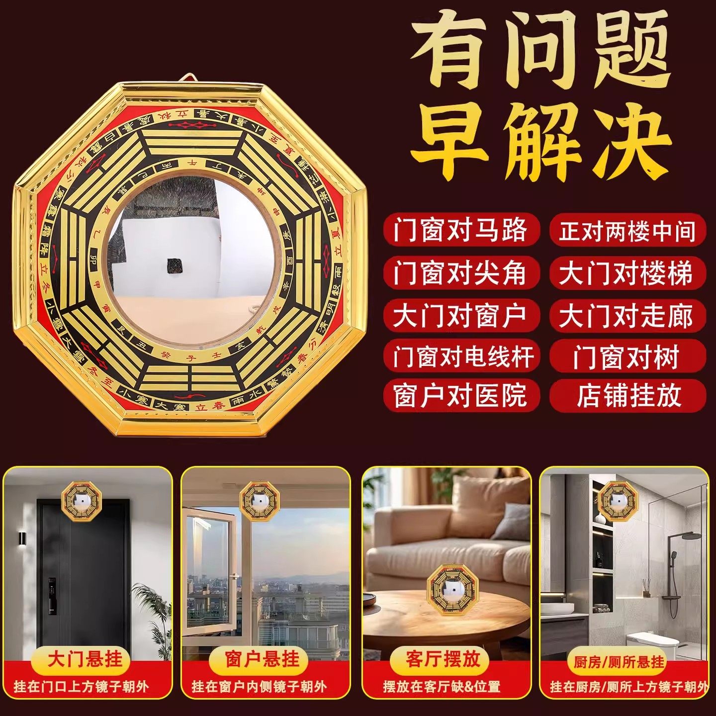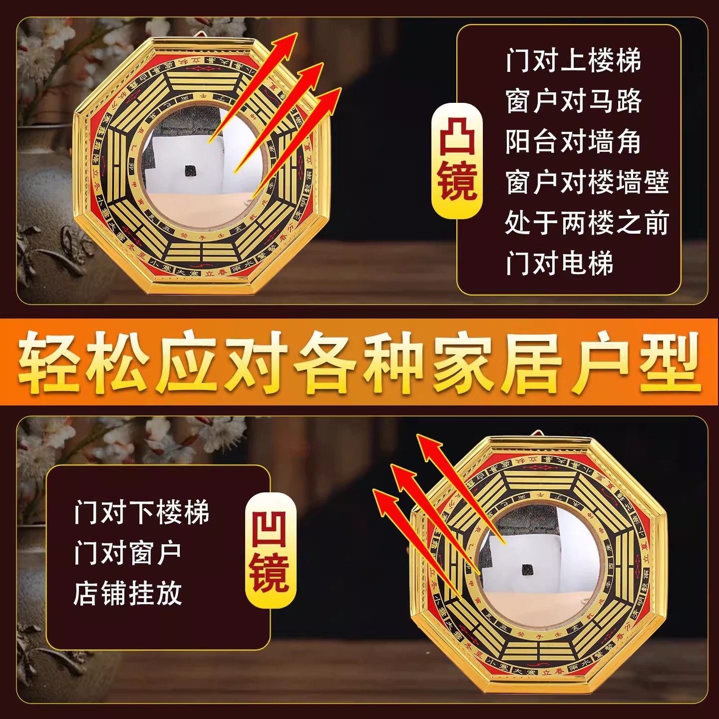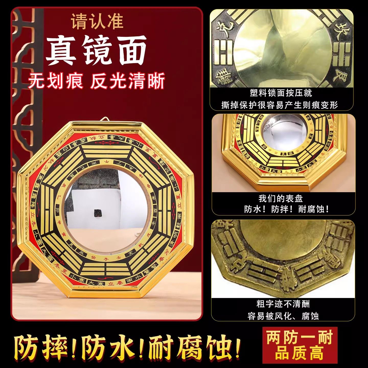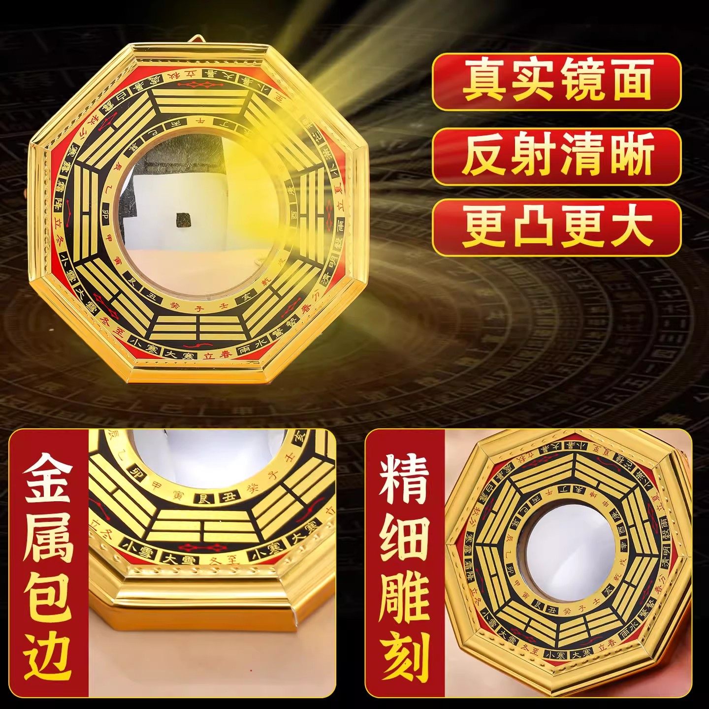 八卦凸镜大门口家用窗户凸面阴阳镜子铜质九宫太极镜阳台摆件挂件