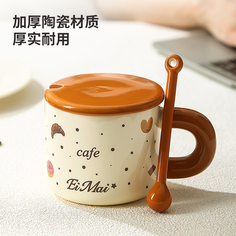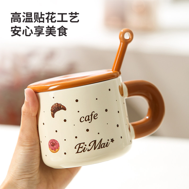 可爱马克杯带盖勺家用水杯女生高颜值办公室咖啡杯子情侣生日礼物