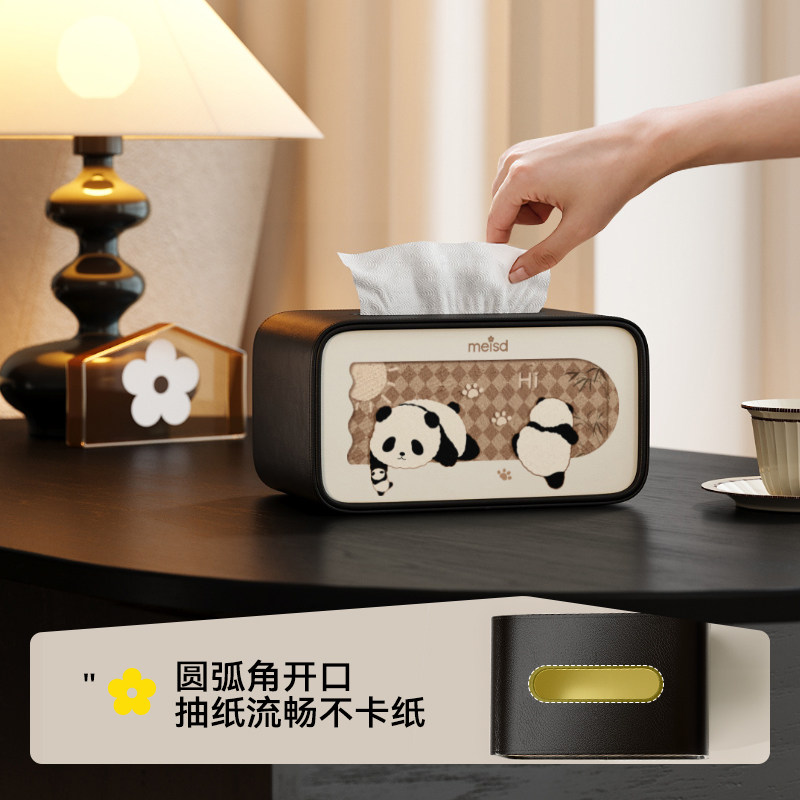 美世达客厅家用高档纸巾盒桌面皮革轻奢茶几遥控器收纳抽纸盒弹簧