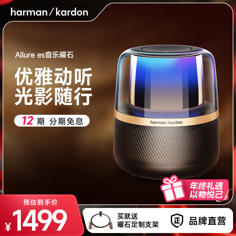 哈曼卡顿AllureEs音乐曜石家用桌面无线蓝牙音箱氛围灯光礼品音响