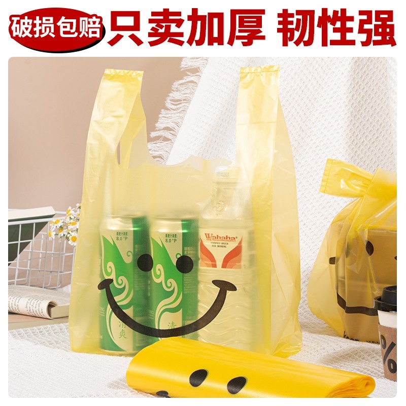 食品级塑料袋特厚方便袋袋子加厚笑脸袋外卖打包手提黄色结实购物
