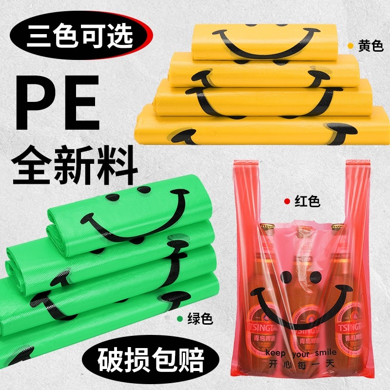 笑脸加厚透明塑料袋外卖垃圾袋商用打包袋购物袋方便手提袋子食品