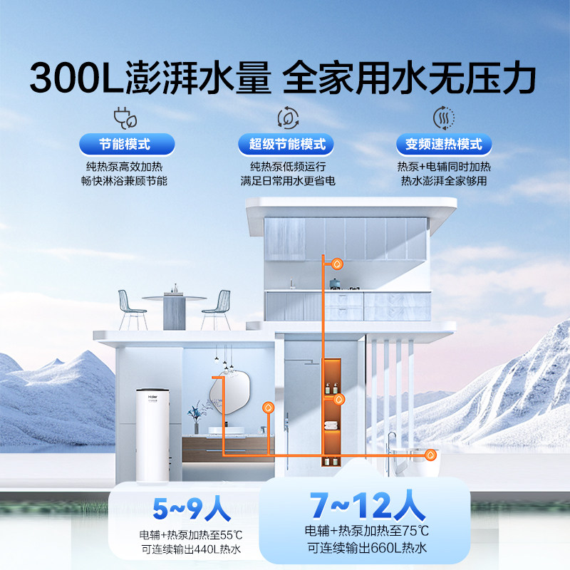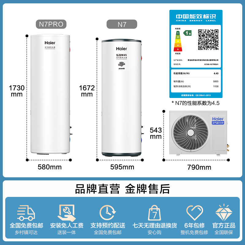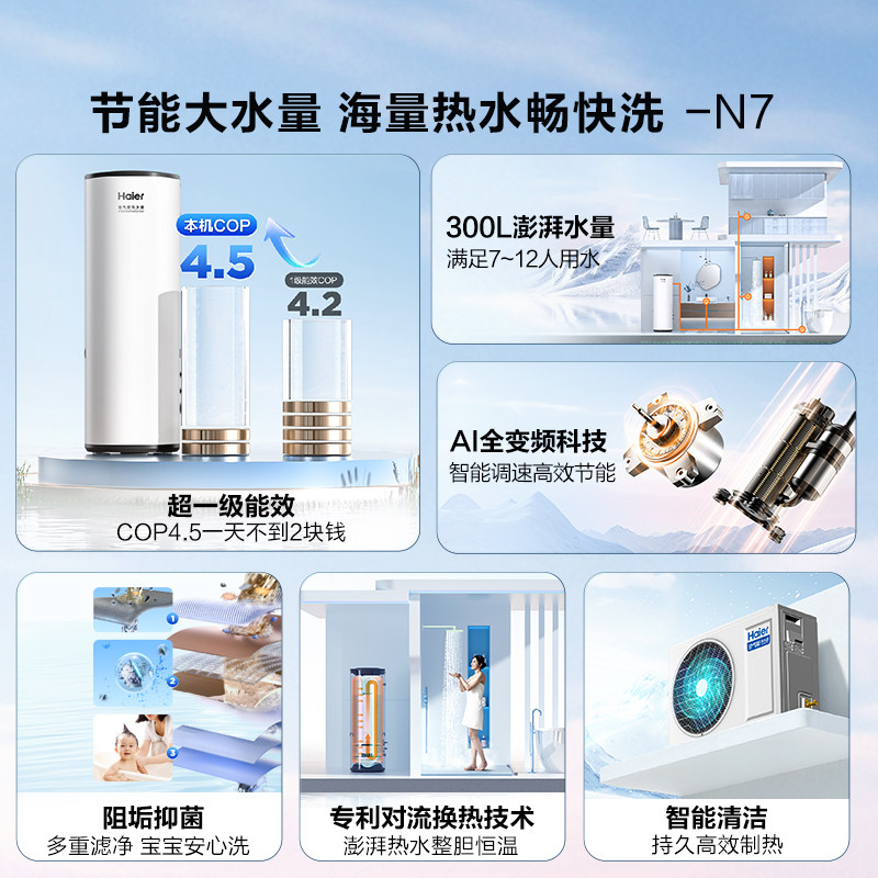 海尔空气能热水器300升空气源热泵2匹全变频节能省电大容量N7