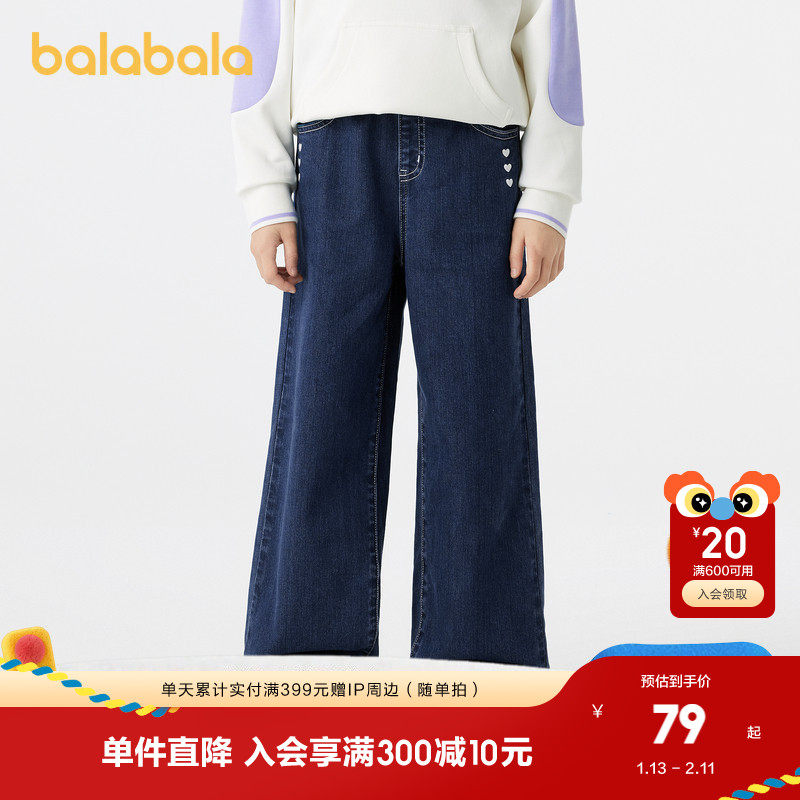 巴拉巴拉童装儿童直筒牛仔裤女童新款春秋百搭长裤子复古洋气甜美