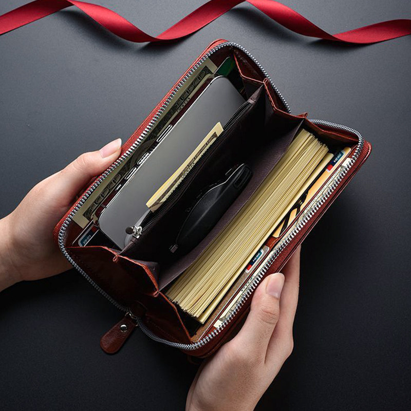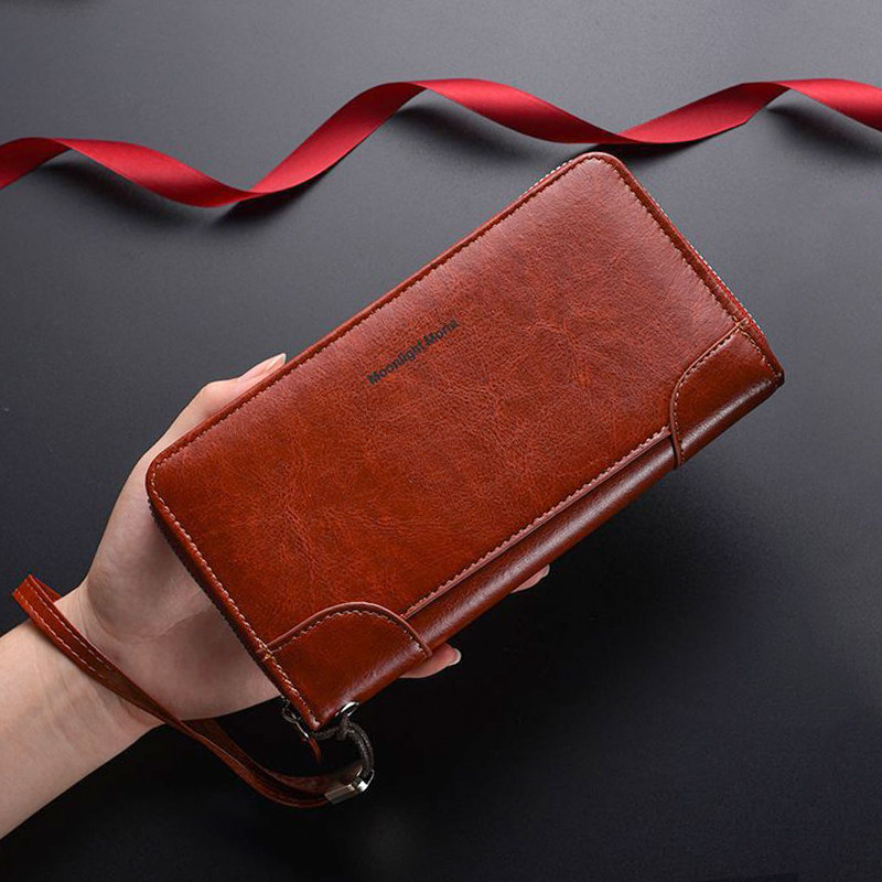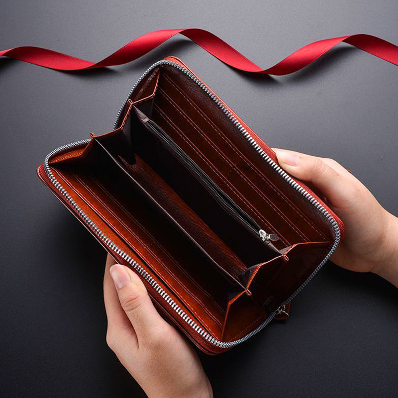 钱包男长款拉链钱夹卡包男士复古横款拉链皮夹手拿多功能零钱包