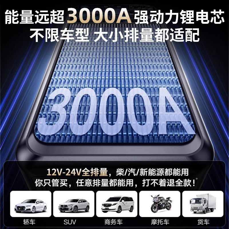 汽车启动应急电源搭电宝充气泵一体电瓶线搭火搭电神器12v24v专用