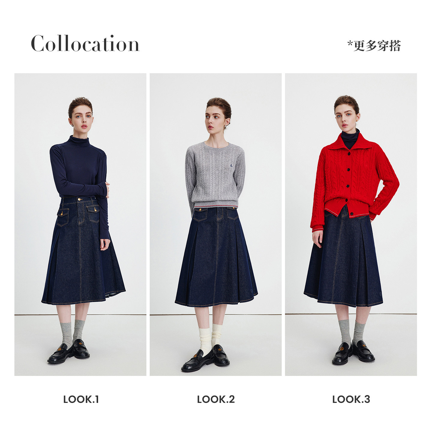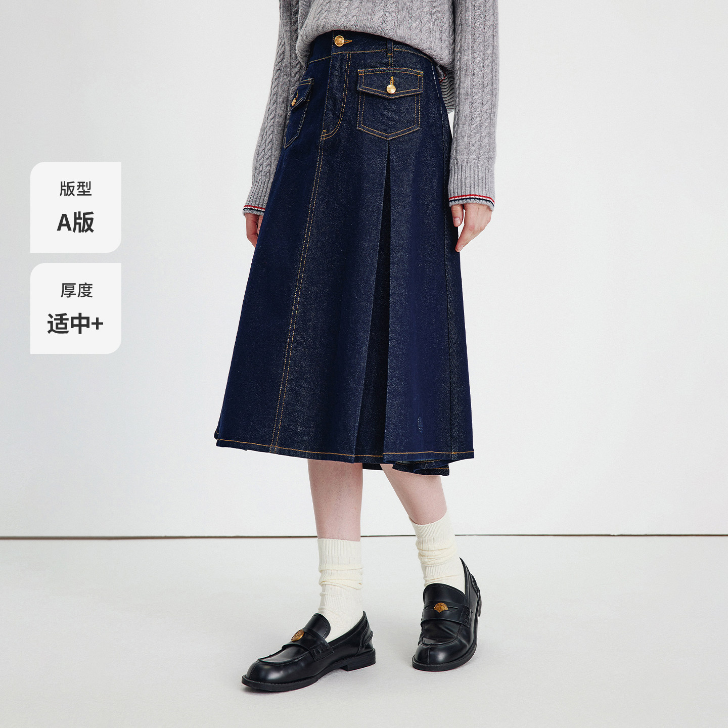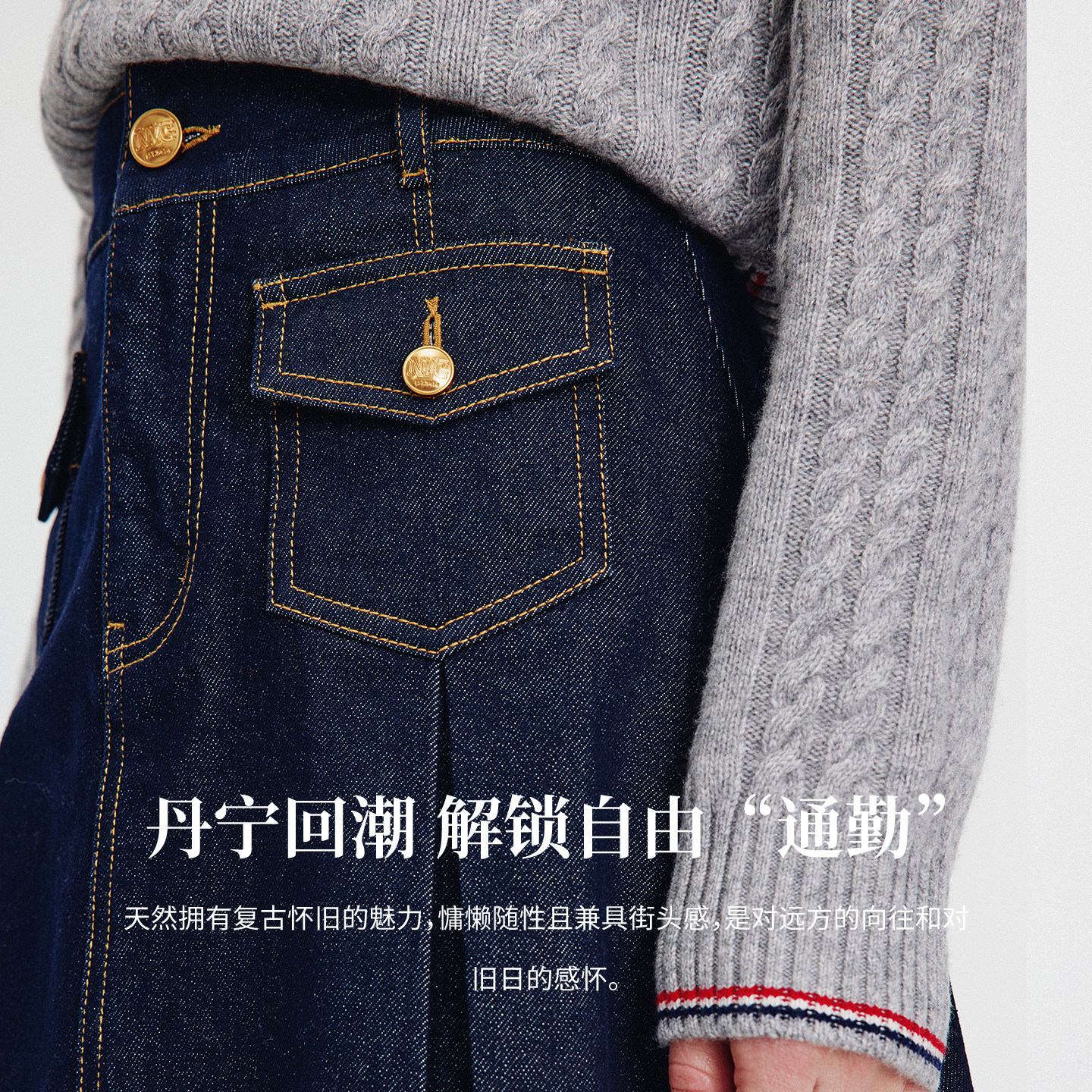 Navigare意大利小帆船水洗牛仔半身裙女26春季新款通勤风A字裙子