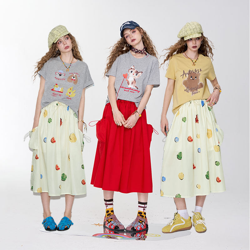 妖精的口袋彩色波点高腰半身裙女2025年夏季新款设计感休闲长裙子