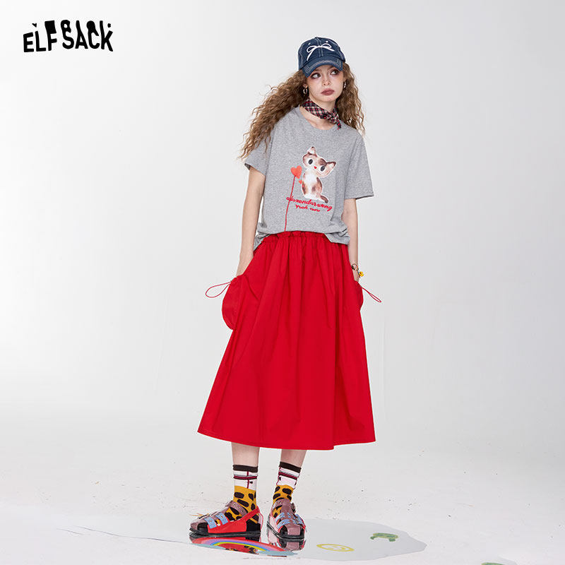 商场同款森马半身裙女磨毛纯棉长裙2025秋新款纯色伞裙百搭20002
