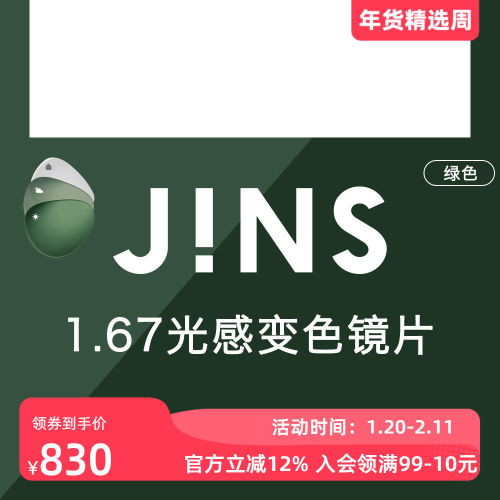 JINS睛姿新款1.67光感变色非球面镜片普通近视眼镜升级专用 3色入
