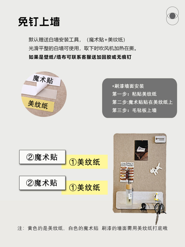 照片墙毛毡留言板组合置物架挂钩毛毡墙贴书桌展示板软木板幼儿园