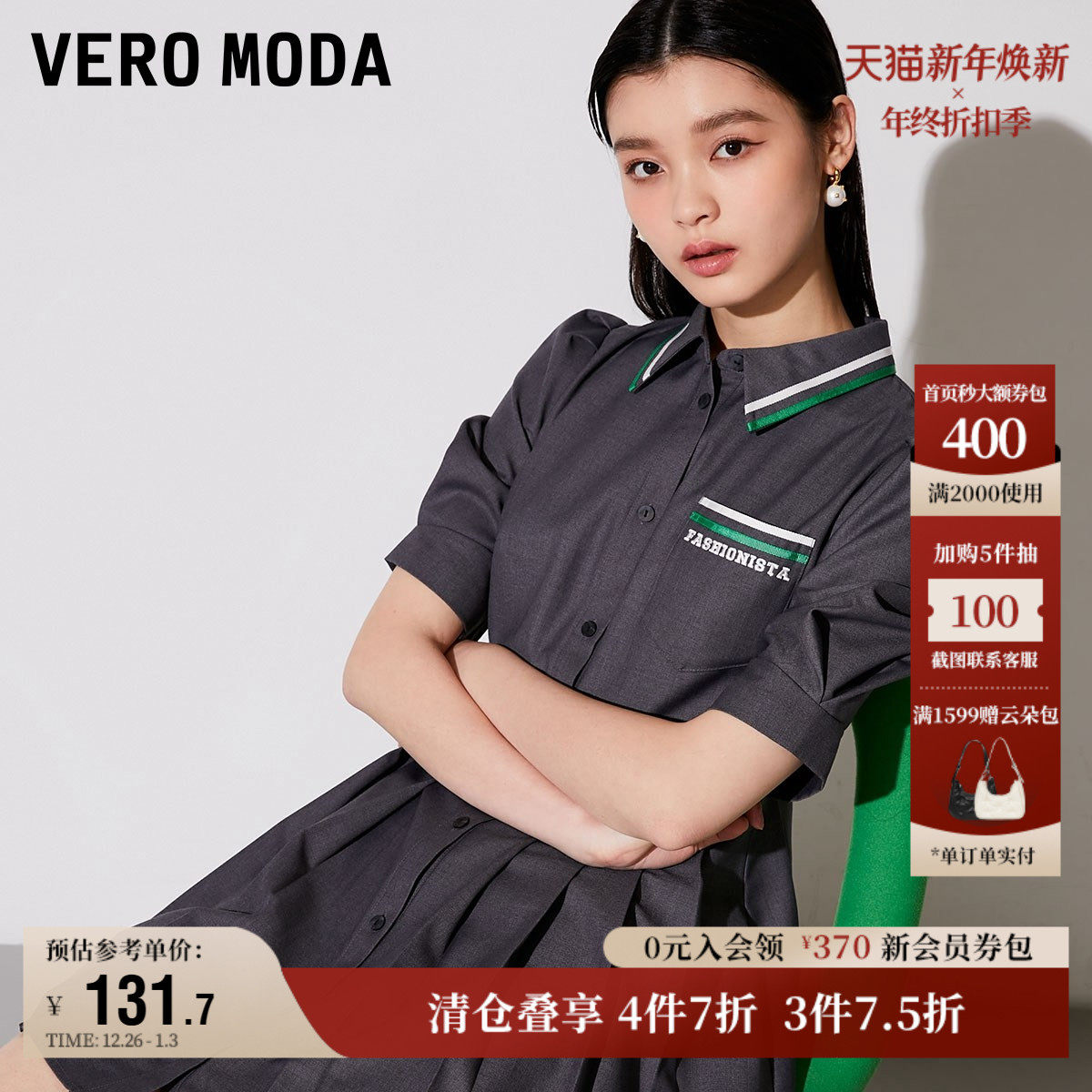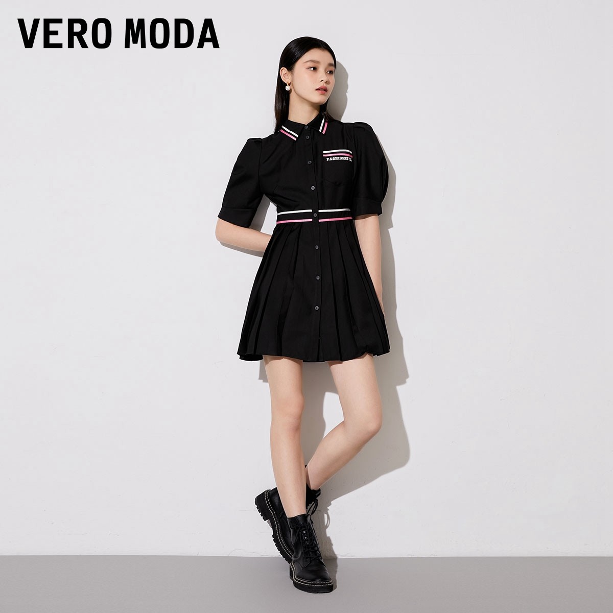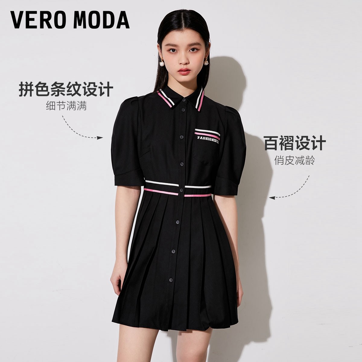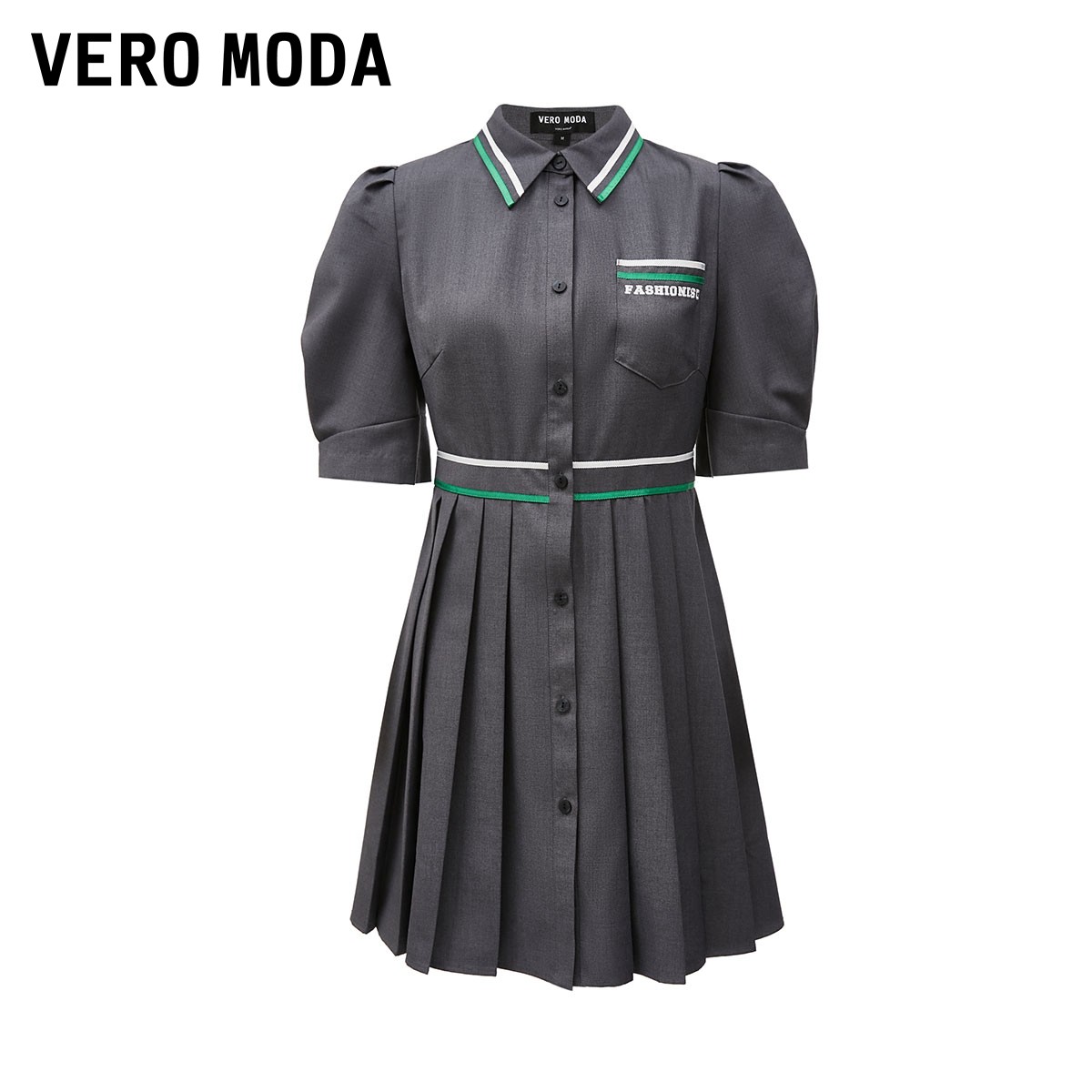 Vero Moda奥莱连衣裙子秋冬清仓学院风百褶裙衬衫领泡泡五分袖女