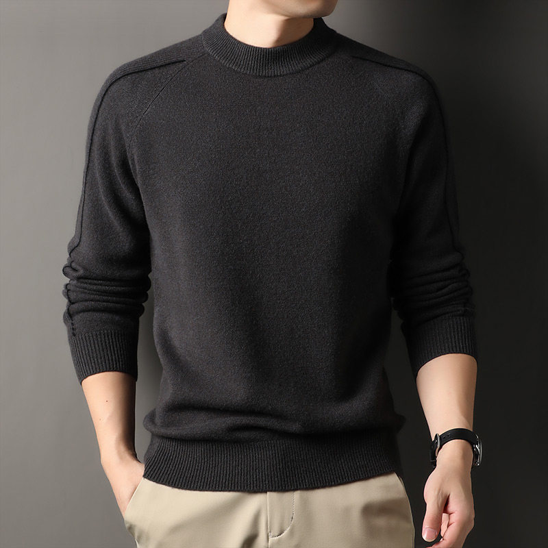 恒源祥男士纯色半高领毛衣100%纯羊毛衫宽松套头打底针织衫爸爸装