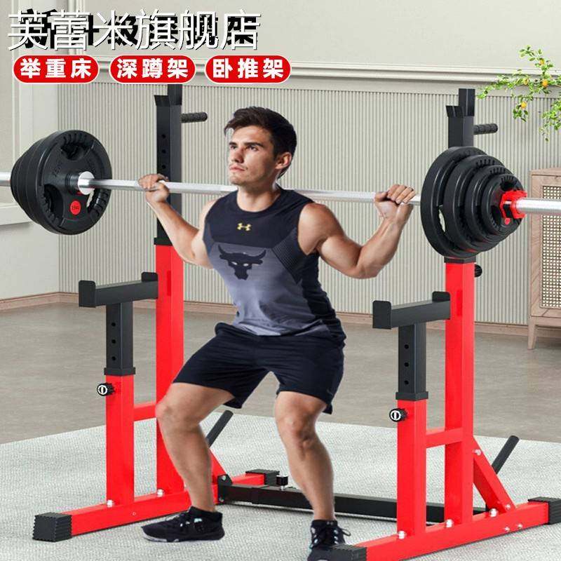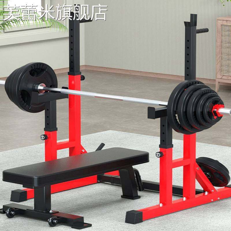 芙蕾米杠铃卧推架深蹲架男士专业增肌举重床家用健身器双杠臂屈伸龙门架饰品摆件垫垫