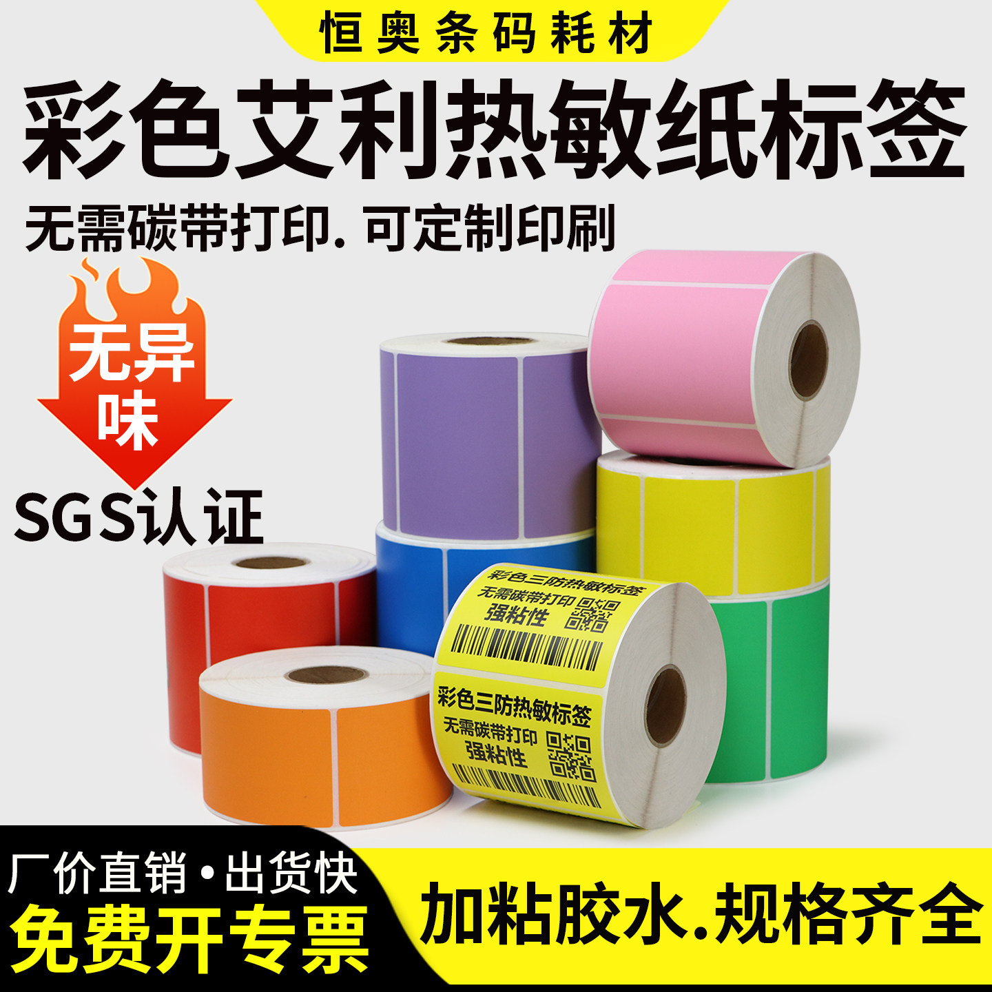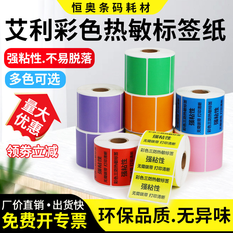艾利彩色三防热敏标签纸不干胶20 × 25 30 35 40 45 50 55 60 75 80 x 90 * 100 打印条码定制印刷黄红绿紫
