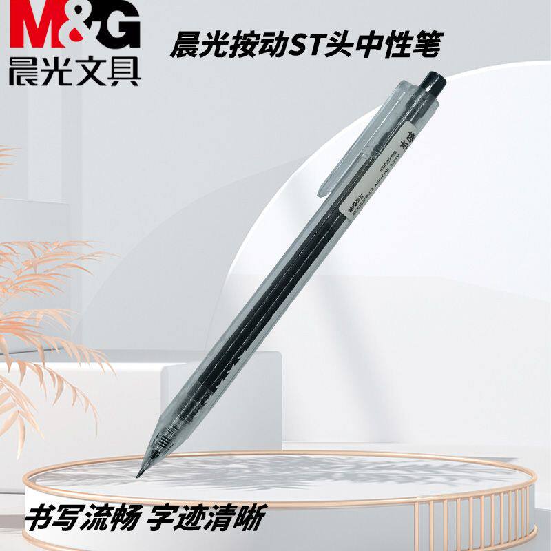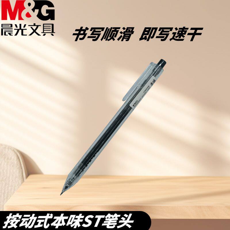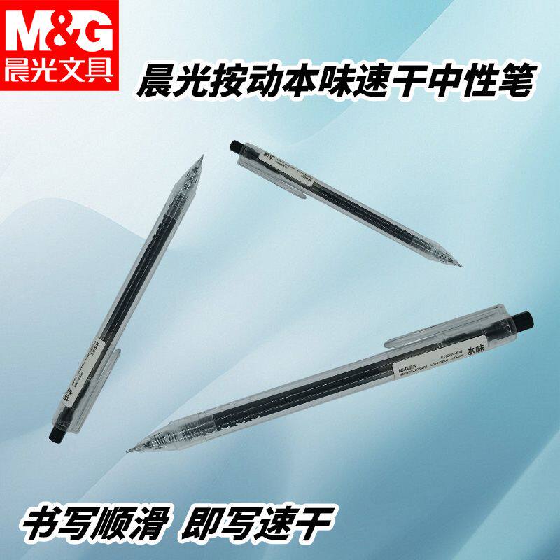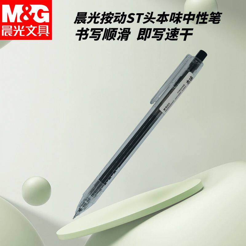 晨光AGPH2801本味按动中性笔签字笔黑色0.5秒干ST笔头学生用水笔