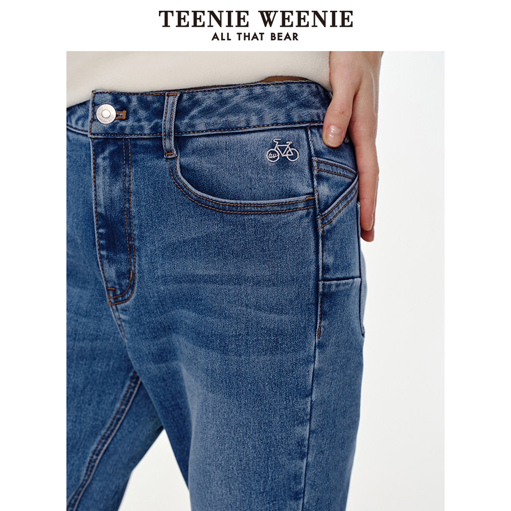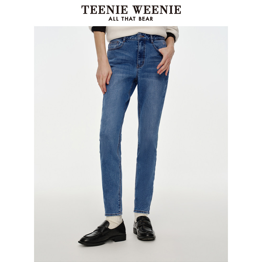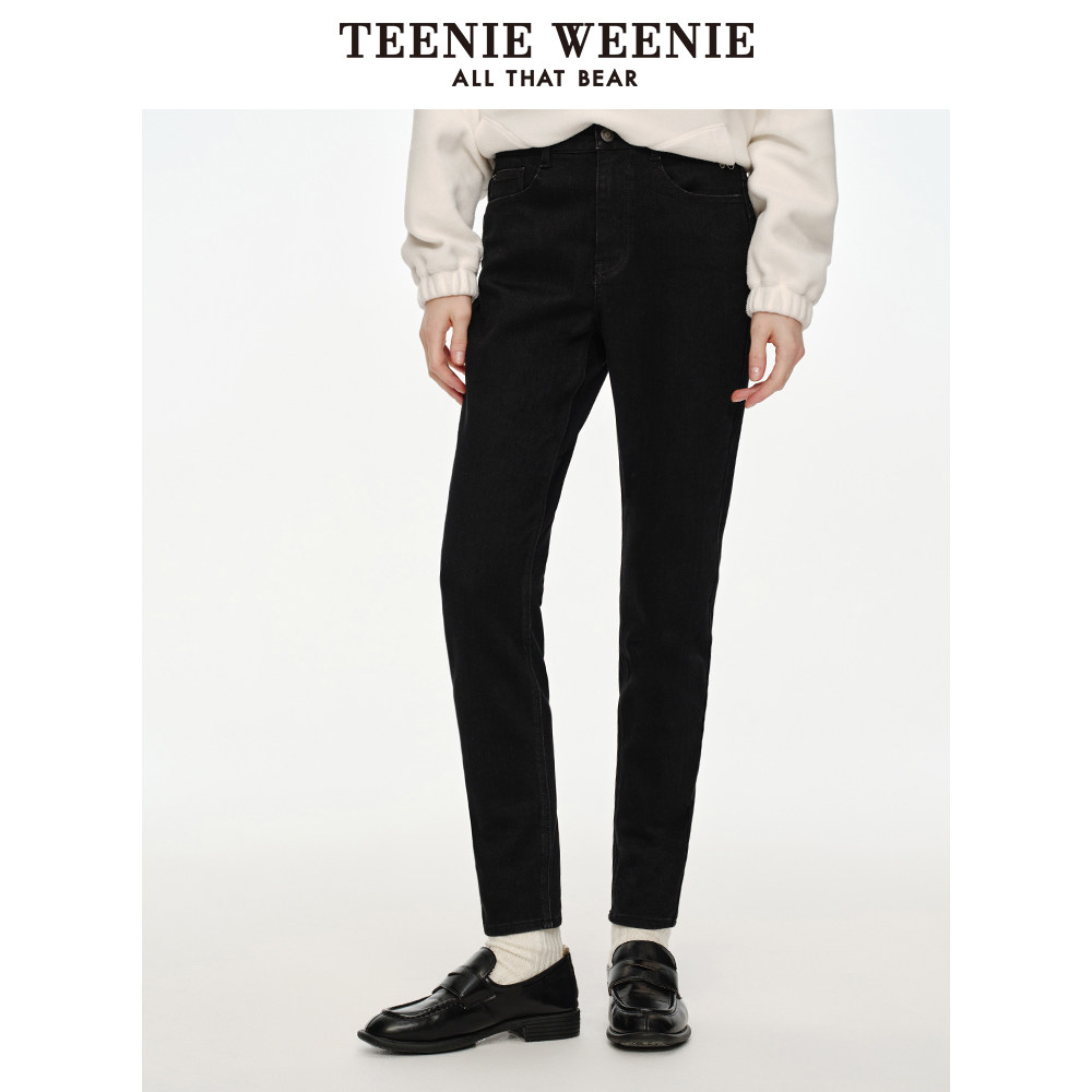 TeenieWeenie小熊奥莱女装秋季舒适休闲高腰黑色小脚铅笔牛仔长裤