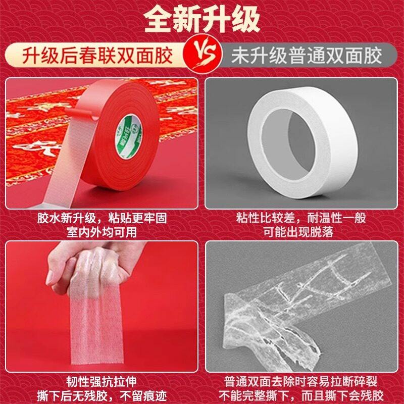 贴春联对联双面胶带撕下不留痕迹红色布基无痕胶布婚庆婚房装饰