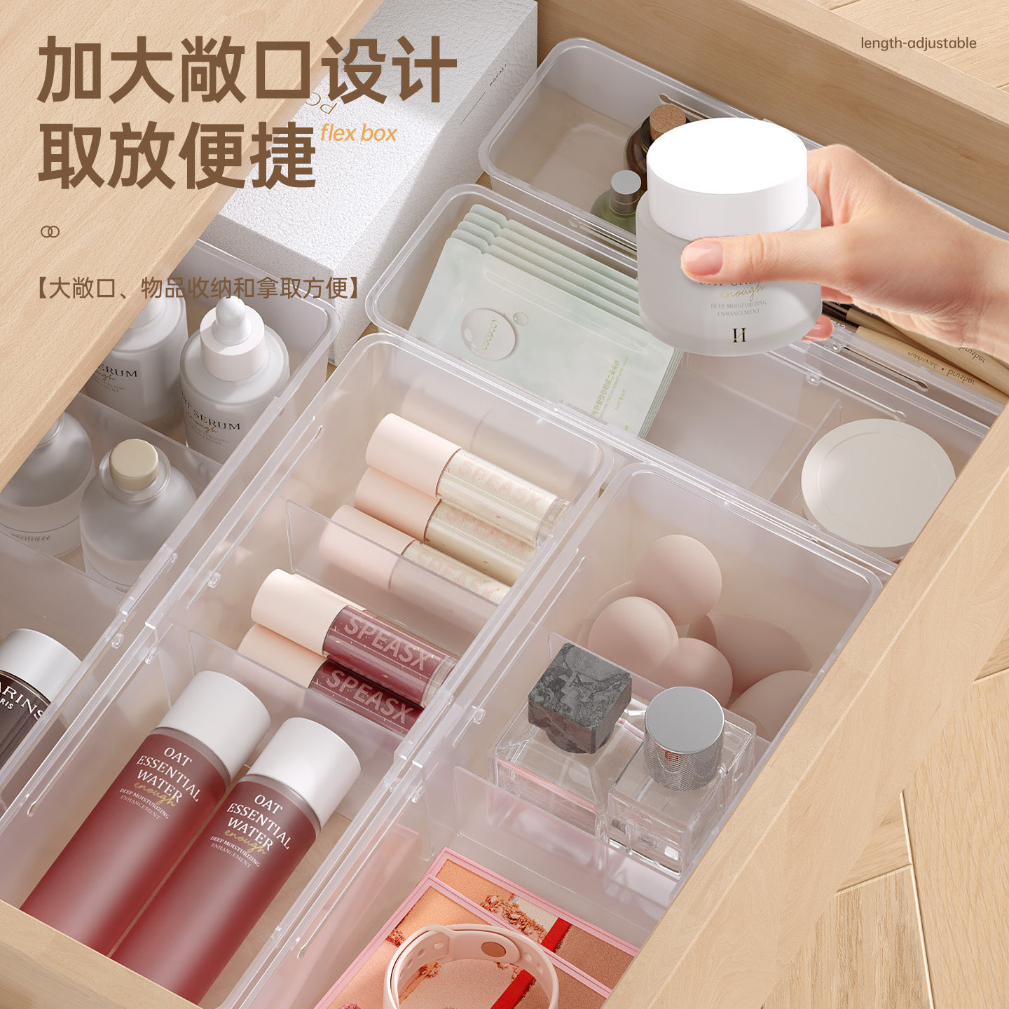 抽屉分隔收纳盒内置可伸缩口红化妆品收纳盒梳妆台厨房餐具整理盒